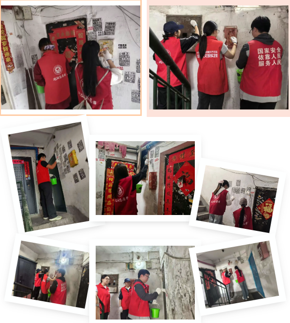 两个支部的党员们精神饱满,热情高涨,他们手持清洁工具,重点对社区内楼道、宣传栏、墙体等公共区域乱张贴的小广告(俗称“牛皮癣”)进行了彻底清理。面对粘贴牢固、覆盖多层的小广告,党员们发扬不怕脏、不怕累的精神,用铲刀、喷壶、抹布等工具耐心细致地逐一清除,努力还原社区环境的整洁面貌。同时,另一部分党员对社区公共区域、卫生死角堆放的杂物进行了规整和清理,消除了安全隐患,畅通了居民出行通道。在劳动过程中,党员们不仅分工明确、配合默契,还积极与社区居民进行交流,宣传维护公共环境卫生的重要性,引导大家共同爱护美好家园。他们以实际行动改善了社区环境,赢得了社区居民的纷纷点赞。