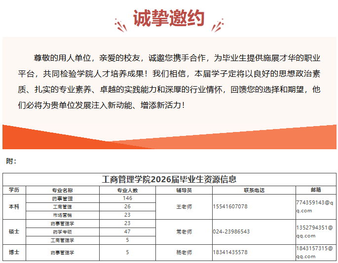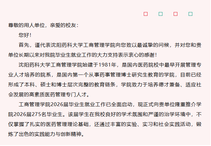 工商管理学院致2026届毕业生用人单位的推介函