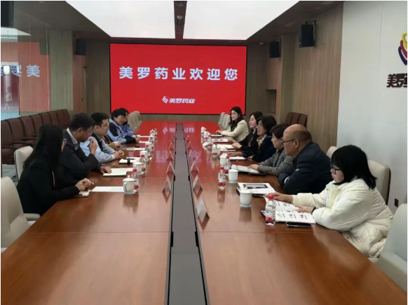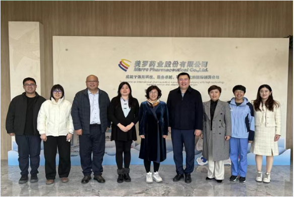 在美罗药业,企业总经理奚灏瀛热烈欢迎学院领导老师一行,亲自带领大家参观企业,对企业历史、主要产品、红色基因等进行了深入介绍。在交流环节中,校企双方围绕人才共育等议题展开深入探讨。双方一致认为,加强高校与优质企业的产业对接,是推动教育教学改革、提升学生实践能力与就业竞争力的重要途径。双方将以此次交流为契机,通过资源整合与优势互补,构建互利共赢的协同发展机制。