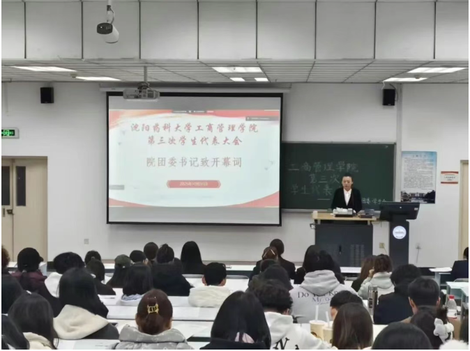 10月31日,沈阳药科大学工商管理学院第三次学生代表大会在校本部新二教室和南校区第三教学楼206教室同步召开。工商管理学院团委书记杨惠琳及117名学生代表参加了本次会议 。