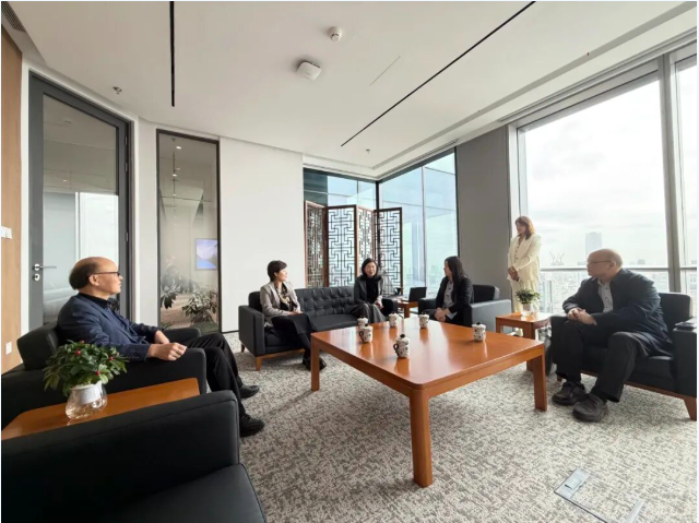 在卫材(中国)药业有限公司,公司董事长、我院56期校友冯艳辉热情接待了学院领导和老师,学院院长黄哲汇报了学院发展情况,着重介绍了学院专业布局、师资队伍、学科发展和人才培养等方面取得的成绩和面临的困境,并诚恳问计于师姐。