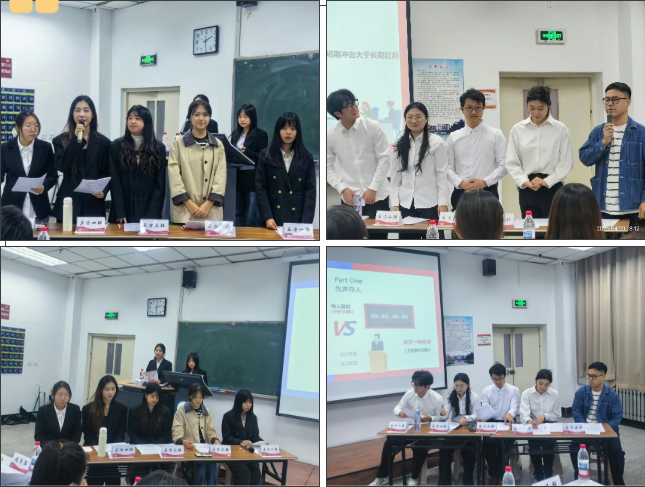 4 月 20 日晚 6 点,辩论赛决赛于新一教室正式开赛。活动特邀工商管理学院袁红梅教授、韩煦副教授及学院团委书记杨惠琳老师莅临担任嘉宾评委。指导教师常天宇老师、姜亚男老师分别带领 2024 级研究生代表队 “AAA 辩论队” 与 91 期代表队 “专业团队” 展开终极交锋,为全院师生呈现了一场兼具专业深度与思辨温度的精彩赛事。