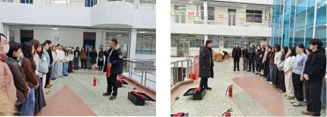 为进一步提升师生消防安全意识和应急处置能力,我院还特邀保卫处组织开展了现场消防演练。演练前,保卫处张军处长结合图书馆建筑特点与常见火灾隐患,围绕火灾预防、报警流程、疏散逃生要点及灭火器正确使用方法等内容进行了系统讲解,提醒师生在紧急情况下保持冷静、科学避险。随后保卫处靳星老师进行现场演示,详细示范了灭火器“提、拔、握、压”的操作步骤,并指导师生分组进行实操演练,确保大家真正掌握灭火技能。通过演练有效增强了师生的消防安全素养和应急协同能力,为营造安全稳定的校园环境奠定了坚实基础。