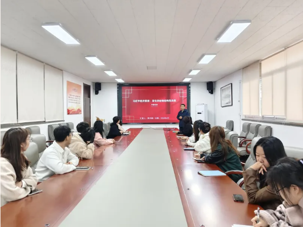 为深入学习贯彻习近平新时代中国特色社会主义思想,扎实开展党的二十届四中全会精神学习宣传,进一步推动党建与业务深度融合,2026年4月13日,工商管理学院市场营销教工党支部与研究生第二党支部依托学院党的创新理论宣讲员工程,联合举办“联学共建 笃行育人”主题党日活动。本次活动聚焦“深化供给侧结构性改革”与“树立正确政绩观”两大专题,通过师生联学、理论共研的形式,强化思想引领,凝聚发展共识。本次会议由市场营销教工党支部书记傅书勇老师和研究生第二党支部书记杨惠琳老师主讲,研究生第二党支部全体党员参会。