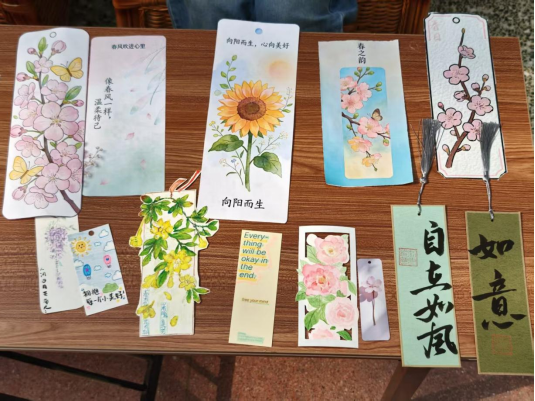 在“春日治愈.心向美好”春日书签比赛活动中,同学们结合花草、暖阳、春风等春日元素,搭配自己的心理感悟,用手绘、干花粘贴、书法等形式制作原创书签,把治愈的寄语、暖心的图案融入方寸之间,传递温暖与希望。