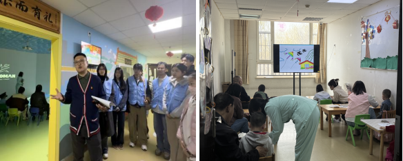 早8点,星火志愿者们早早抵达现场,在工作人员的引导下,开启了这场充满意义的公益之旅。同学们观摩了孤独症儿童康复标准化服务场景,每一间教室里,康复教师都耐心引导着孩子们在互动中学习、在游戏中成长,志愿者们被这些平凡而动人的瞬间深深触动。